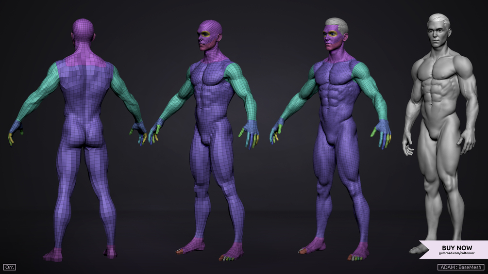 This model is ideal for anyone looking to bring their understanding of anatomy and form to the next level. The mesh has Clean Topology, Edge Loops, and evenly distributed quads that make it ideal for sculpting in ZBrush. I created this BaseMesh to meet the needs that I had when I was just beginning to learn human anatomy. I hope you find it useful!